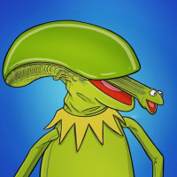 a popular character from "The Muppets," with a large alien head on its body. The alien has