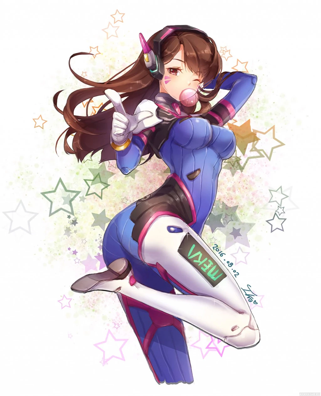 a female character from the video game "Overwatch." She appears to be D.Va, one of the playable