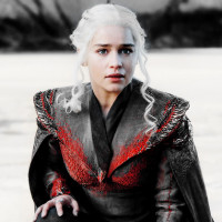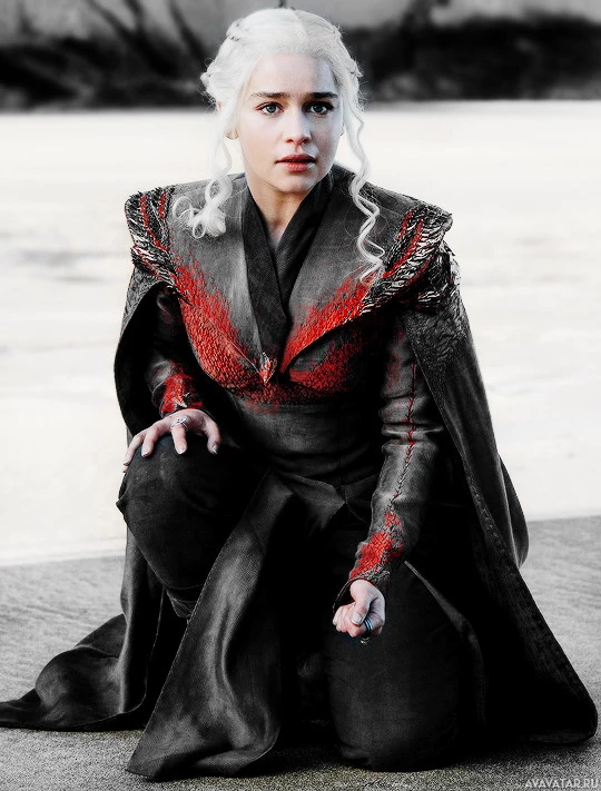 Daenerys Targaryen, portrayed by actress Emilia Clarke. She is depicted in her role as a queen and
