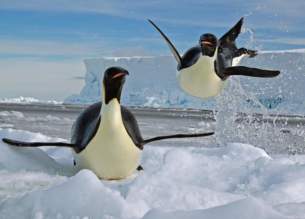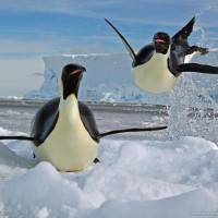 playful behavior such as jumping or leaping into the air above an icy surface. This kind of activity is not uncommon among penguins, especially among