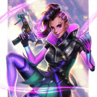 the video game "Overwatch." The character in the picture is known as Sombra, recognized by her purple and black outfit with a high collar and the distinctive