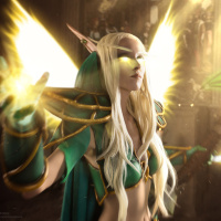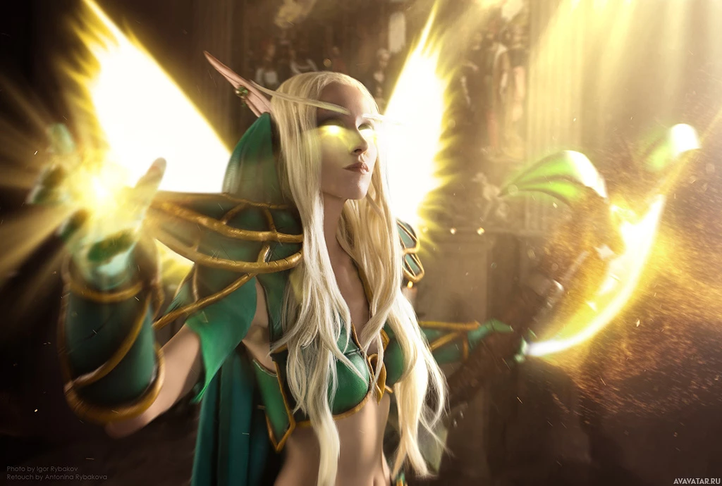 The image shows a character that appears to be an elf, based on the fantasy context provided. She has long