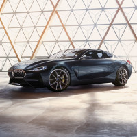 sports car, which appears to be an Aston Martin model. The car is parked on a reflective floor in front of
