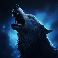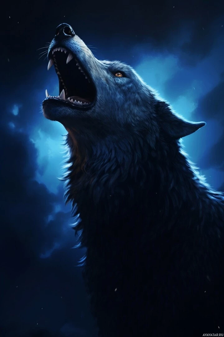 a night sky or a stormy scene, which contributes to the intense mood conveyed by the wolf's expression.
