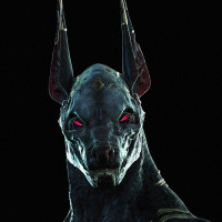 Egyptian god associated with mummification and the afterlife. This particular representation appears to be inspired by horror or fantasy themes, given the dark, gothic aesthetic and