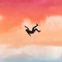 a person in mid-air, seemingly falling or diving. They are the only visible
