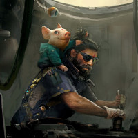 an anthropomorphic pig accompanying the character, suggesting they might have a companionship relationship. The overall atmosphere seems to be that of a detailed illustration rather than a photograph.