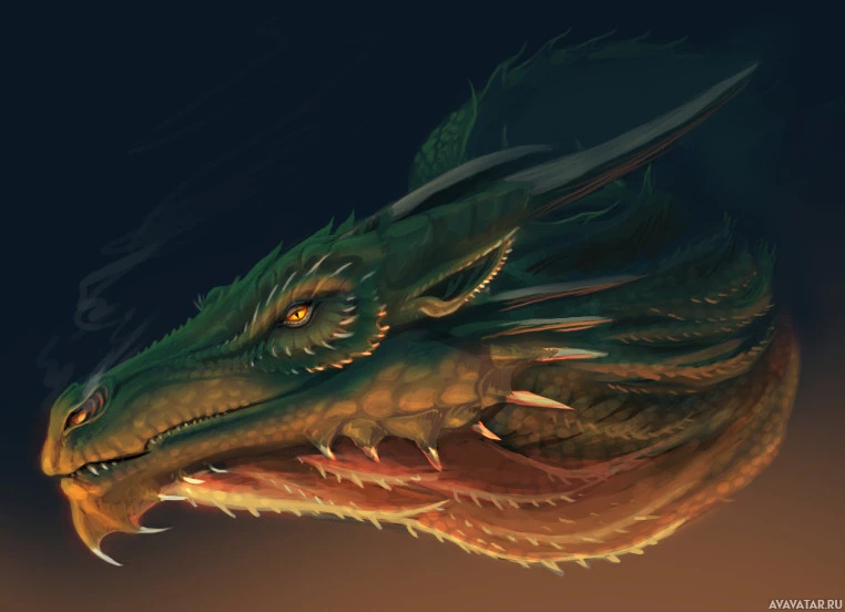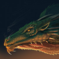 a fantasy dragon. The dragon is depicted with intricate details such as scales, spikes on its back, and horns. It has an expressive face with open eyes and