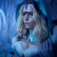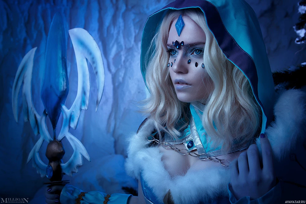 the video game "Dota 2." They are wearing an elaborate costume that includes elements inspired by the fantasy and
