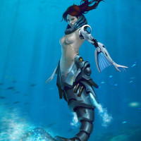 The image shows a character that appears to be a mermaid, but with robotic or cybernetic enhancements. This is indicative of