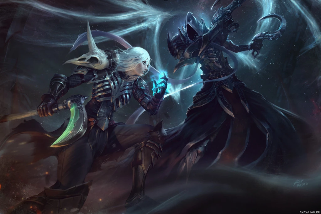 a battle scene. This image is characteristic of the artwork from the "Diablo" series, which is a popular action role-
