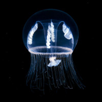 sea creature known as an octopus. It has eight arms and appears to have its sucker-like tentacles extended, which is characteristic of these animals for movement or for capturing prey. Octopuses are found in