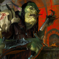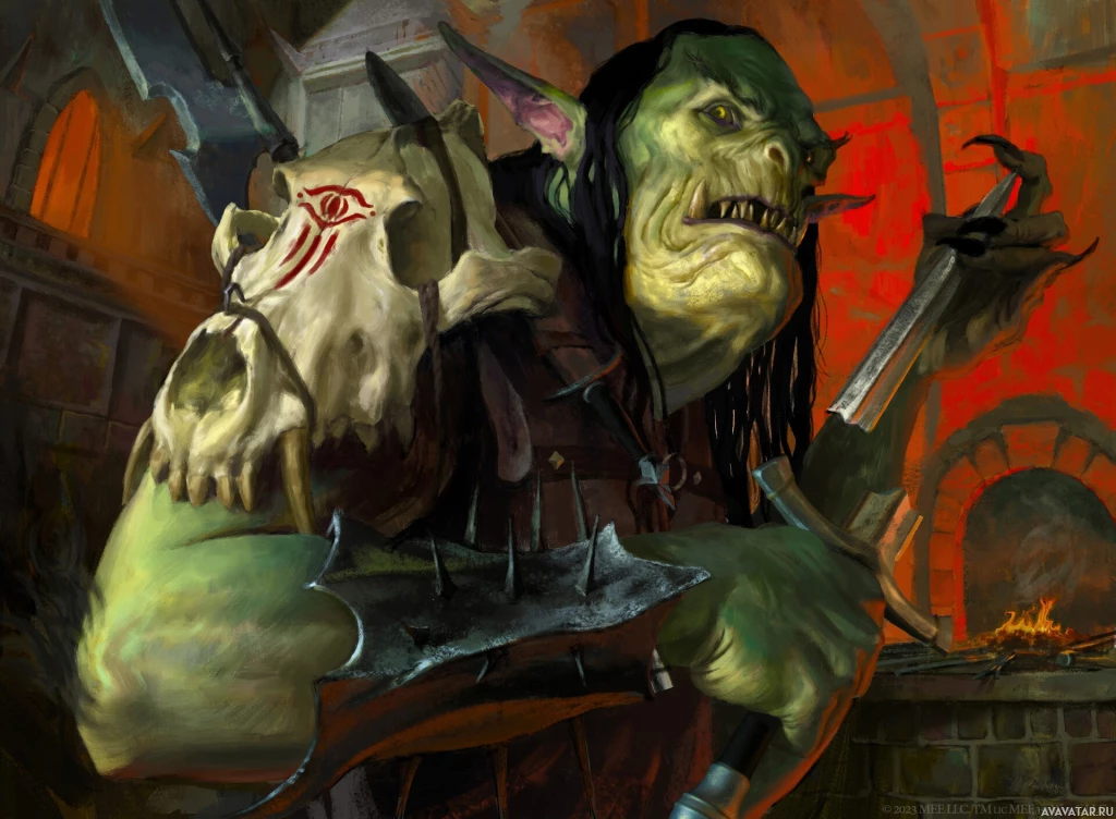 video games, and movies. In this image, the orc is shown holding a sword in its left hand and has