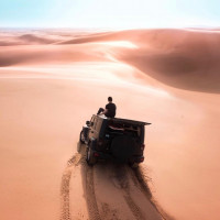 recent activity by the vehicle. The image conveys a sense of adventure and solitude in