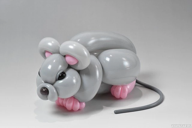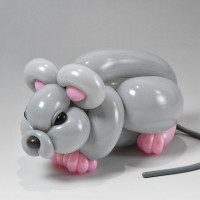 an inflatable toy that resembles a mouse. It is designed with balloon material and features the typical characteristics of a mouse, such as two ears, two eyes, a nose, whiskers, and a tail. This type of item is often used for decorations or as