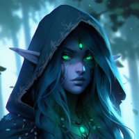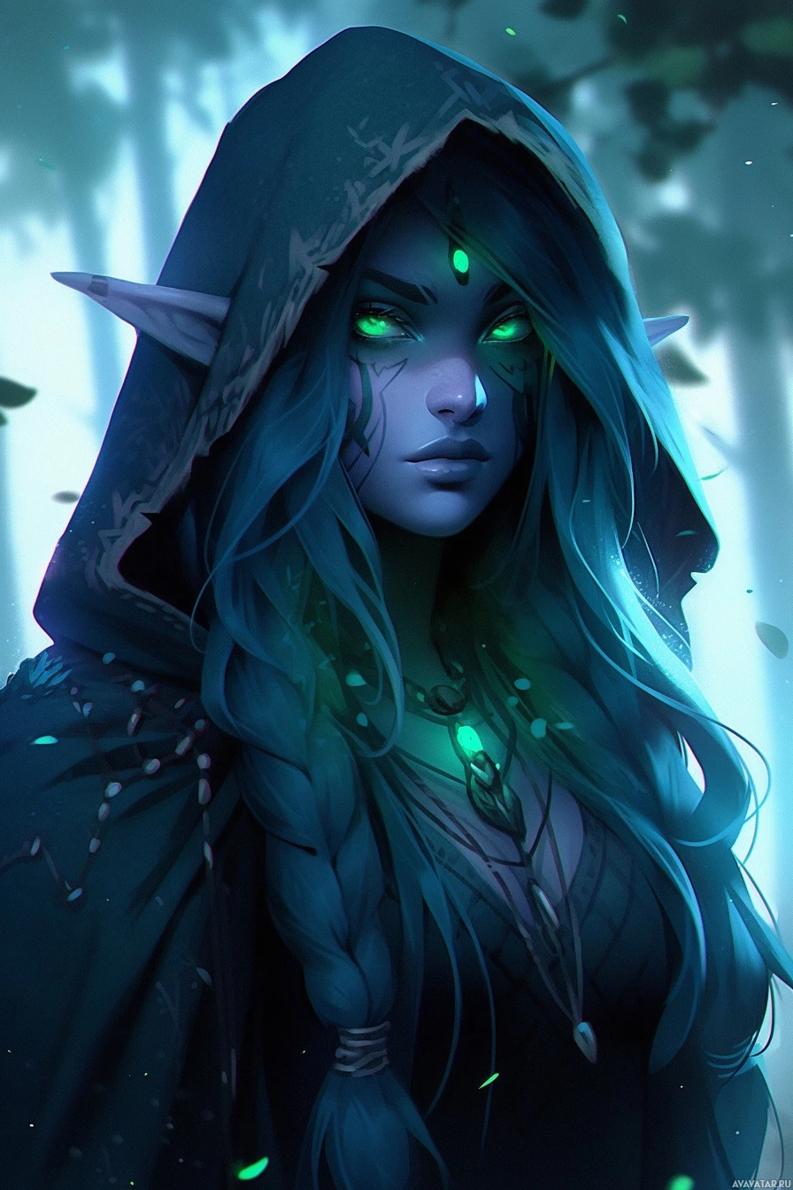 the fantasy genre, depicted with human-like features and pointed ears, which is characteristic of an elf. This character is wearing