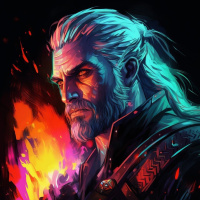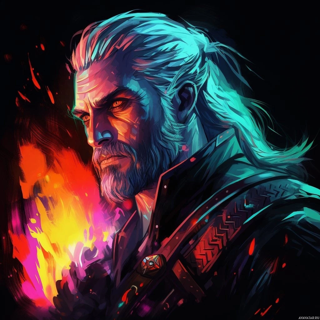 white hair and beard, often seen as one of the protagonists in the games. He is depicted wearing armor that is typical for his character, complete with an emblem on his chest. The background has a dark tone with a hint of magical or mysterious elements, which aligns with