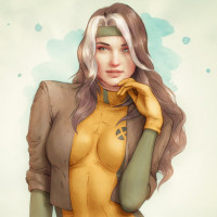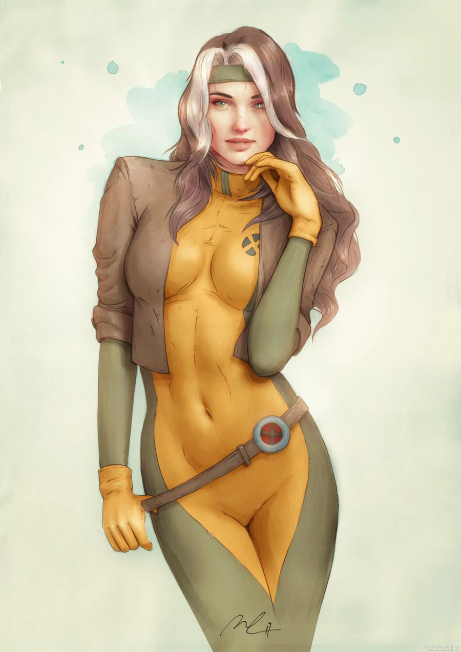 comic series, specifically resembling Rogue due to her costume and powers. The character is depicted with