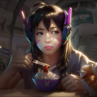 the video game "Overwatch." She is shown in a realistic style with anime-like features, which is common for