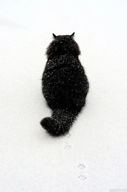 снег | Скачать аватары с снегом | Snow | Интригующий контраст между котом и белым фоном