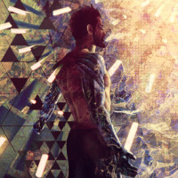 advanced technology and has a cybernetic arm, which aligns with the themes of the game series "Deus Ex," known for its emphasis on technological augmentation and cyberpunk aesthetics.