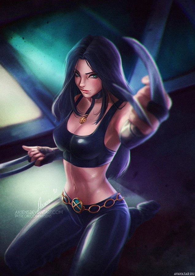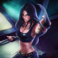 an animated character that resembles Laura Kinney, also known as X-23 from the "X-Men" series. She is shown in