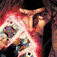 book character, who appears to be Gambit from the X-Men. He is depicted in his iconic pose with