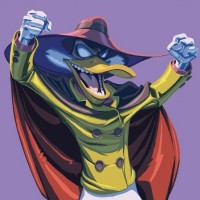 the animated movie "Darkwing Duck." The character depicted is Darkwing Duck, who is known for his adventures and often wears a cape, mask, and