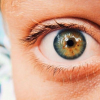 a human eye. It is characterized by the iris, pupil, and lashes. The color of the iris appears to be a mix of blue, green, and hazel tones, which suggests that it might be an example of heterochromia—a condition where an individual has two different colored eyes or patches of skin with