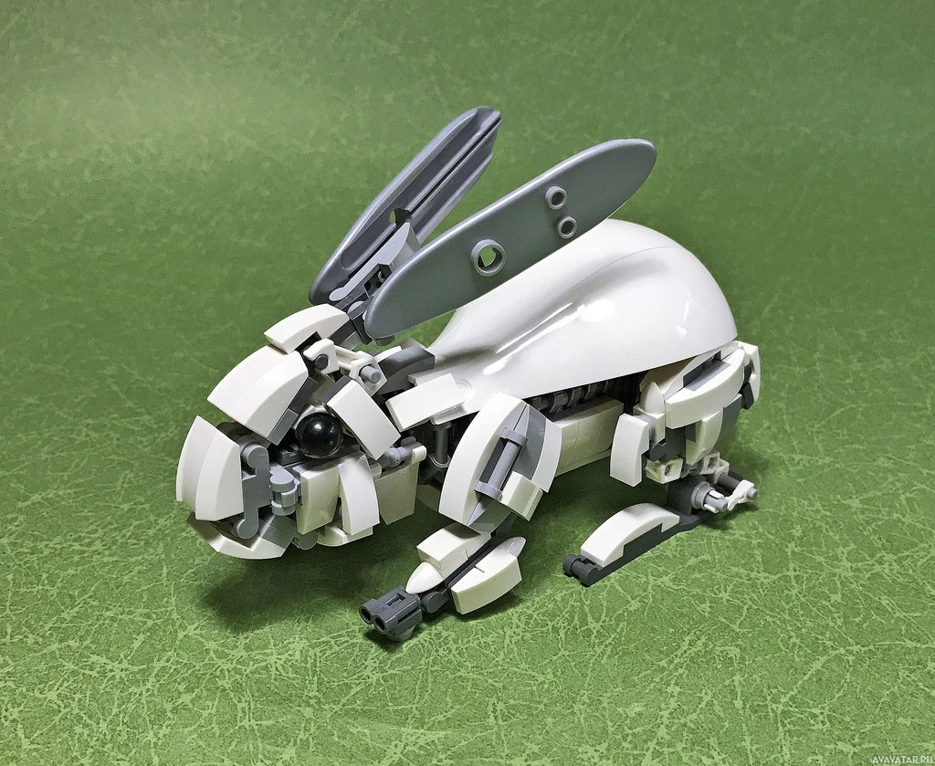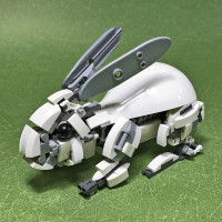 a Lego creation that resembles a rabbit. It's a robotic or mechanized rabbit with a head, body, and legs, likely inspired by the design of