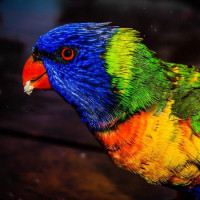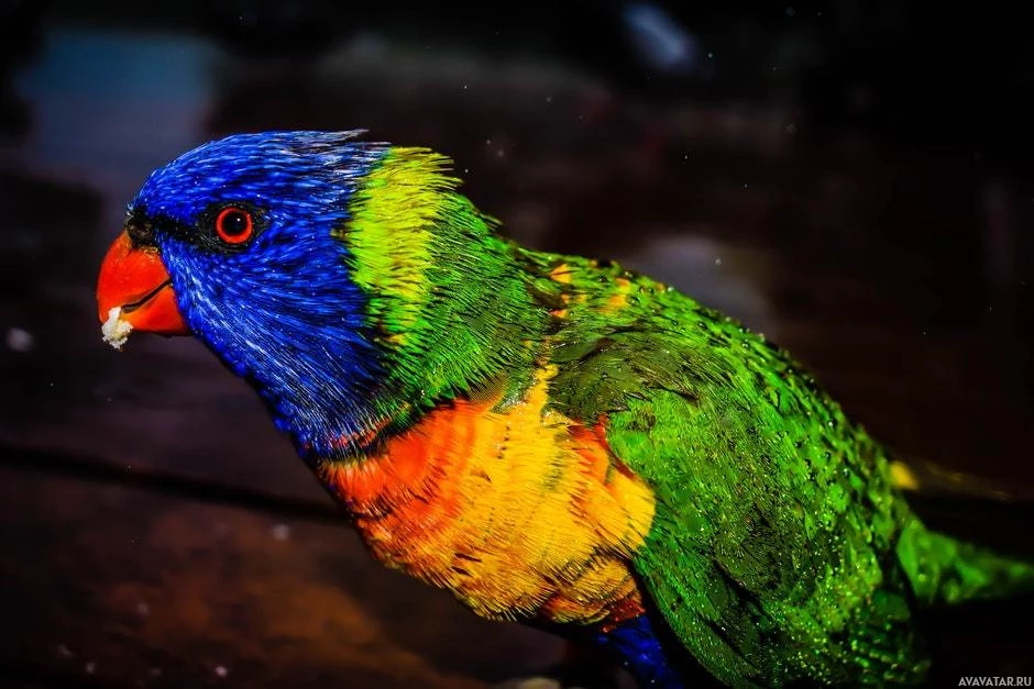 На картинке изображен красочный попугай, в частности один из видов, известный как попугай эклектус. Эти птицы известны своим ярким оперением и, как известно, умные и социальные существа.