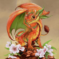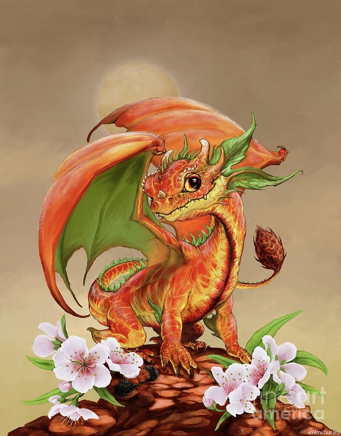 The picture features a fantasy illustration of a dragon. The dragon has a red and yellow color scheme with