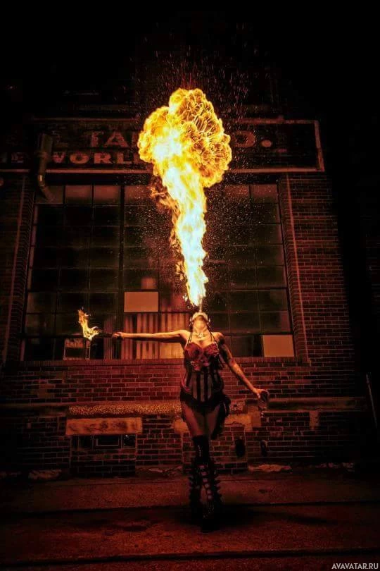 a flame source in their mouth, indicating a fire breathing effect. The person's face is partially obscured by the smoke, adding