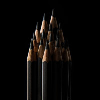 The image shows a pencil with multiple sharp points arranged in a vertical line. This is a creative and unusual arrangement that deviates from the standard way pencils are typically used.