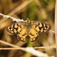 a natural setting, possibly during late summer or early autumn when such species might be more active due to the availability of food sources like nectar from flowers.