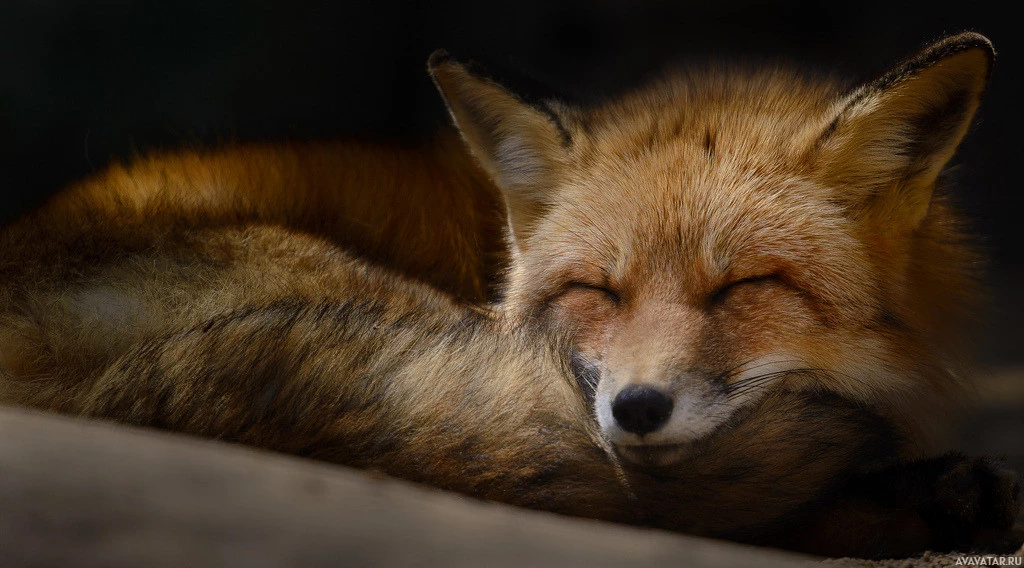 На снимке изображена красная лиса. Кажется, что он отдыхает или спит с закрытыми глазами, и на его лице есть безмятежное выражение. Фон мягко сфокусирован, что помогает привлечь внимание к лисе как центральному объекту фотографии.