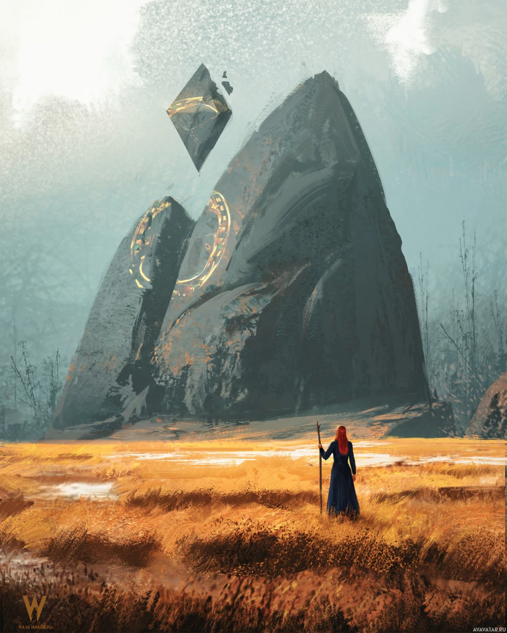 the mystical atmosphere. The background shows a misty landscape with what seems to be a forest, and there's a watermark indicating the source of the image as