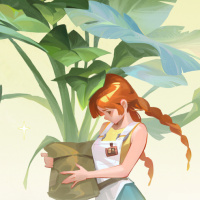 outdoor environment, possibly a garden or a park, with clear skies and sunlight streaming down. The artwork is vibrant and detailed, capturing