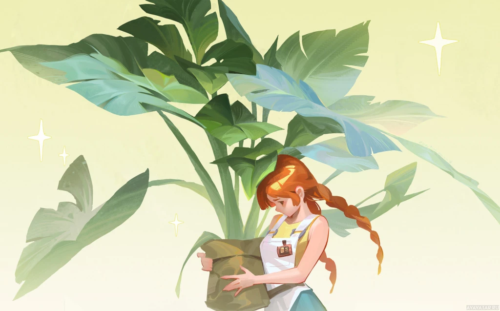 The image depicts an illustration of a red-haired girl with her hair styled in