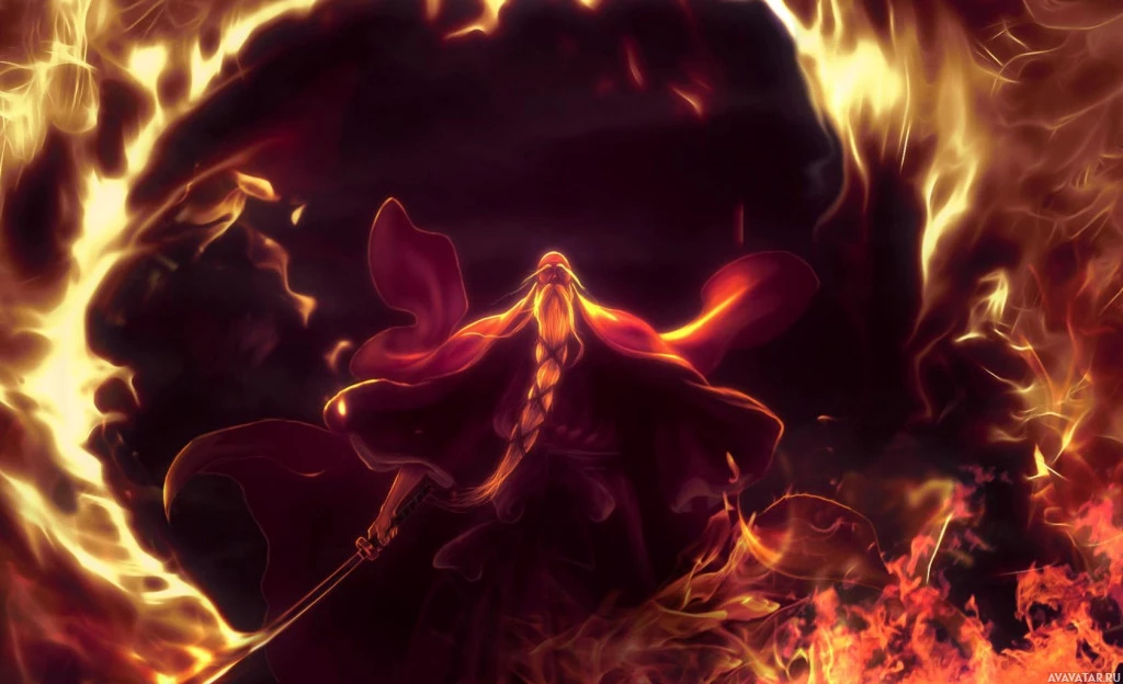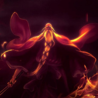 The image appears to depict a fantasy-themed scene featuring an individual with flames surrounding them. This character could be portrayed as a mage or a figure of