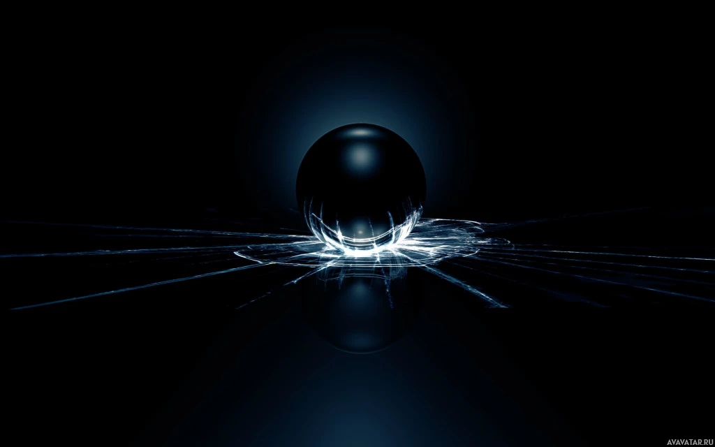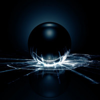 a stark contrast to the shiny sphere which might suggest it's made of glass or a similar material. There are cracks or fissures emanating from where the sphere makes contact with the surface, suggesting