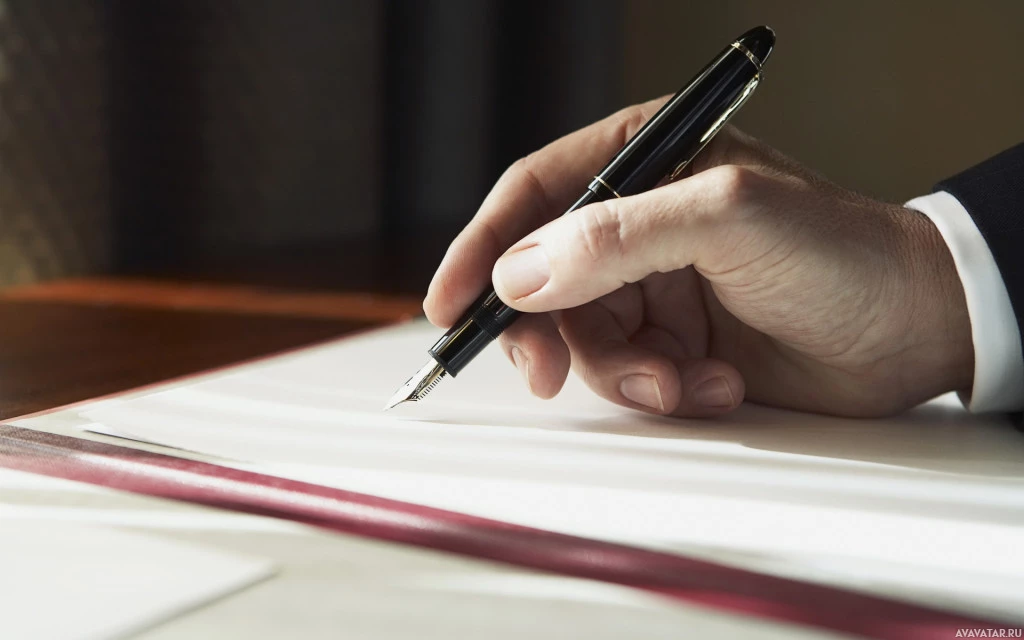 The image depicts a person's hands writing on papers placed on a desk. The individual appears to be in