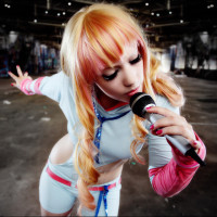 the cosplay event. The background looks like it could be an indoor warehouse or similar setting with