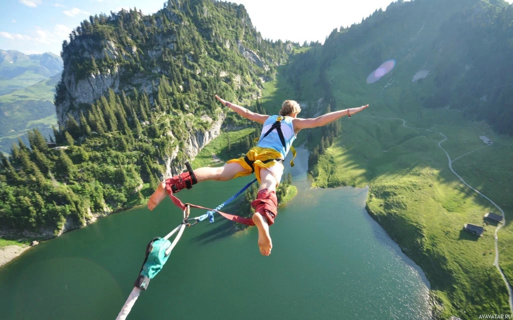 lush greenery, indicative of a mountainous region often associated with outdoor adventure sports.