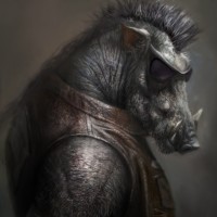 bone structure, suggesting strength and ferocity. It has sunglasses on its face, which adds a touch of style to its otherwise menacing appearance. This artwork likely portrays the character in a darker or more intense setting than what is typical for its
