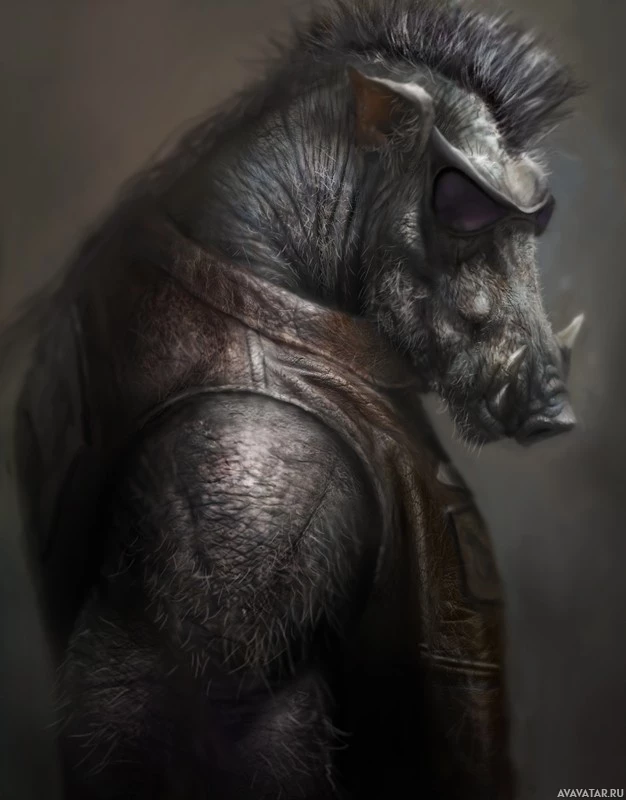 The image shows a character that appears to be a mutated version of Rocksteady, an anthropomorphic pig known from the video