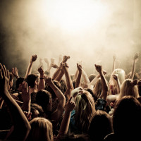 a crowd of people at what appears to be a concert or live event. From behind, you can see their hands raised and clapping, indicating enthusiasm for the performance. The