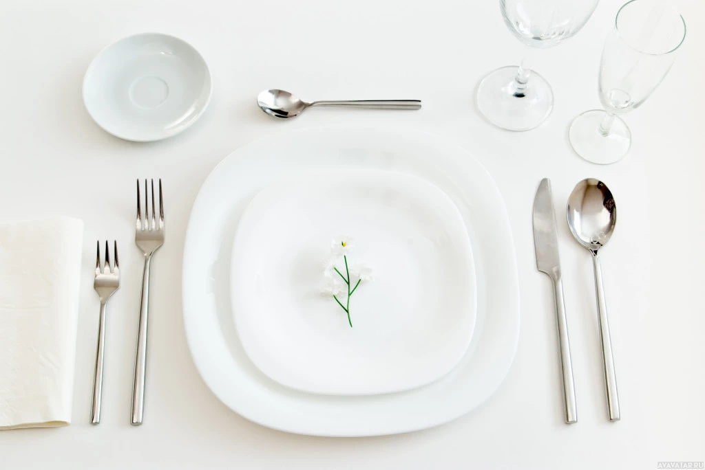 The image shows a formal table setting with dinnerware and silverware. There is a round plate in the center, which appears to have