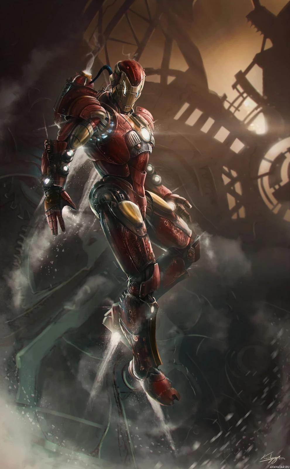 advanced technology that allows him to fly and perform various other feats. In this particular image, Iron Man is shown in