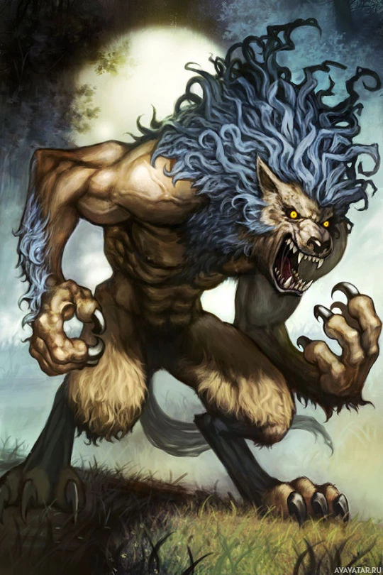 a fantasy creature that resembles a werewolf. It has the body and limbs of